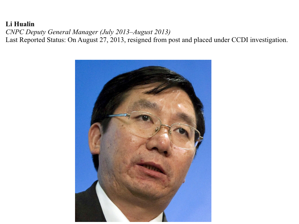 In July 2013, Li was promoted to CNPC deputy general manager, the position held by Zhou when they met in 1983. One month later, Li was detained for corruption and later dismissed from the party.