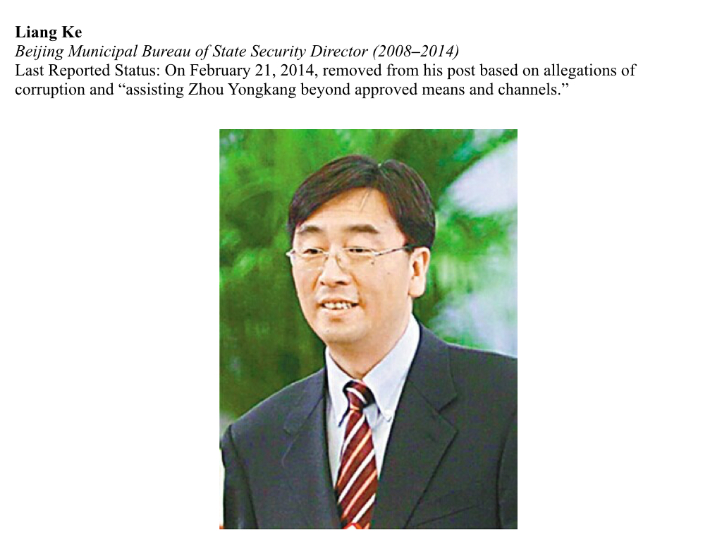 Liang’s motive for assisting Zhou is unknown. Media sources frequently mention Liang Ke as belonging to the political faction within Zhou Yongkang’s network. This faction consisted of Liang Ke, former vice minister of public security Li Dongsheng, and former vice chairman of the Hubei Provincial People’s Congress Wu Yongwen.